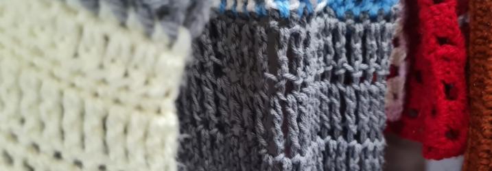 Working in the medium of crochet has been freeing compared to more traditional routes like painting. The work is made from my gran’s wool which connects me to her and my family. This piece originally only entailed exploring a more relaxed monotonous form of play and self-soothing, but with what it has become I want the comfort I felt in creating it to be shared through touch and interaction with the work.Â