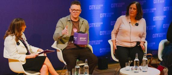 A panel discussion featuring Darren McGarvey, Vikki Hill - Director of Learning Enhancement and Academic Development, Queen Margaret University, Eve Lewis - Director, sparqs and chaired by Siobhan Wilson, Vice Principal of Student Experience at City of Glasgow College, brought diverse perspectives together, reinforcing the value of partnership between students, staff and sector bodies in shaping meaningful educational experiences.