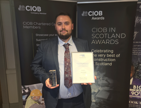 Jaimie, who was nominated by his team at the Graham Group, was a finalist for the prestigious CIOB Graduate of the Year Award. From hundreds of nominations submitted from across Scotland, only five finalists were selected by a panel of multidisciplinary judges.